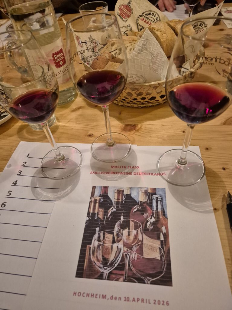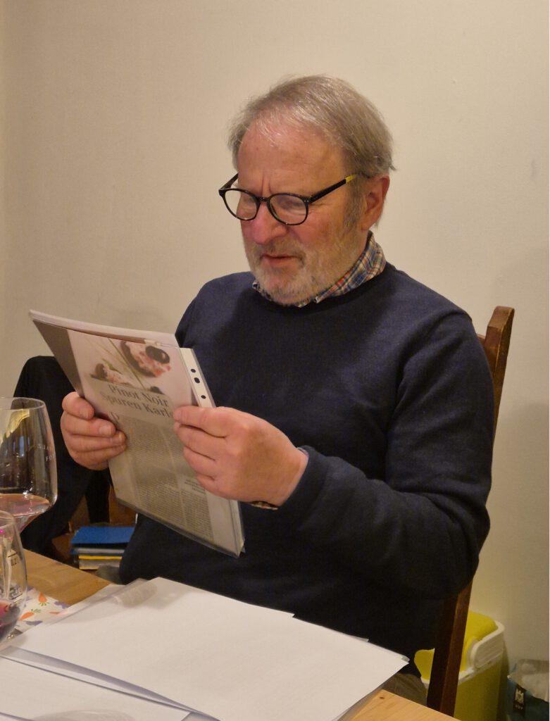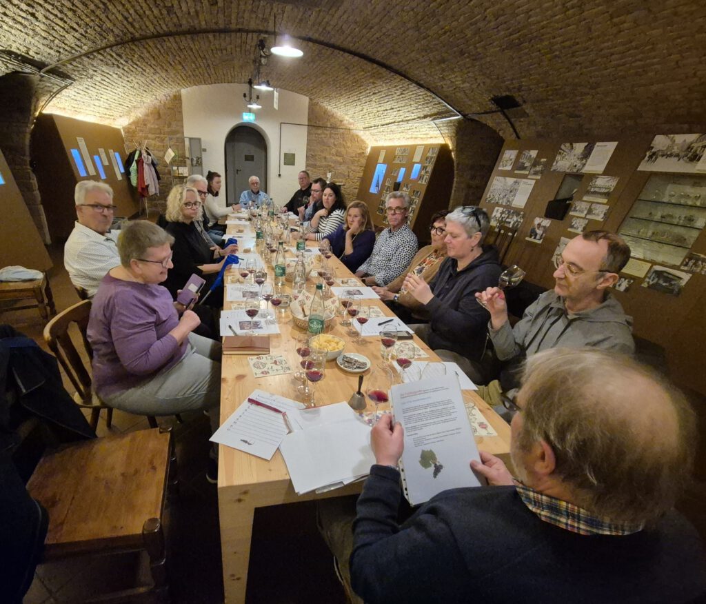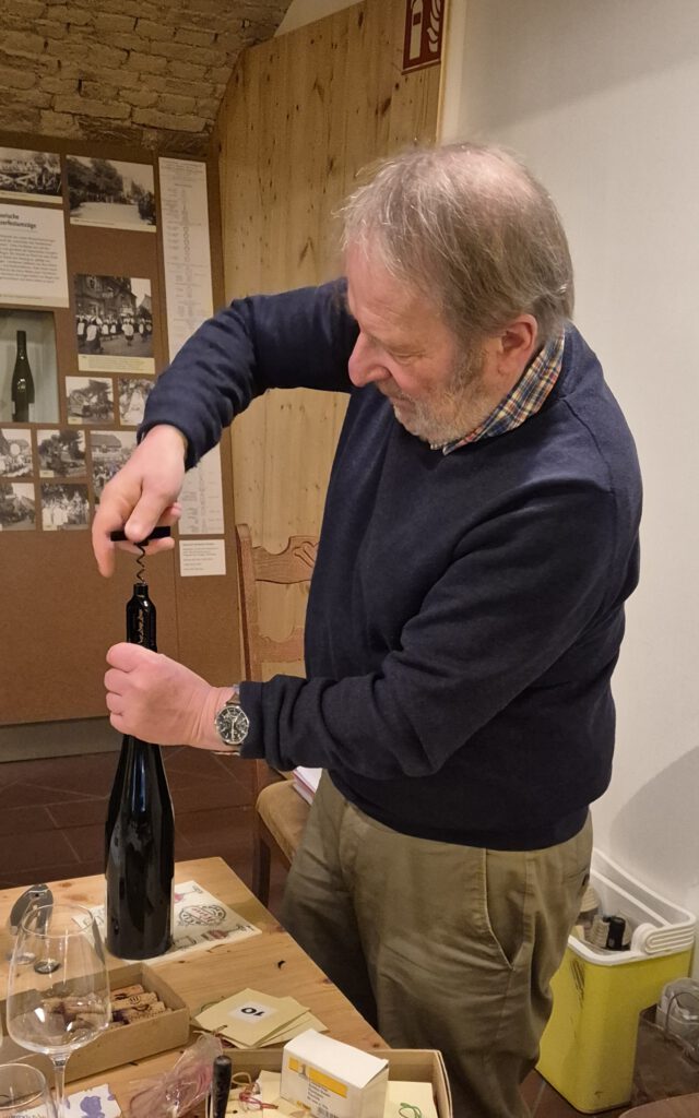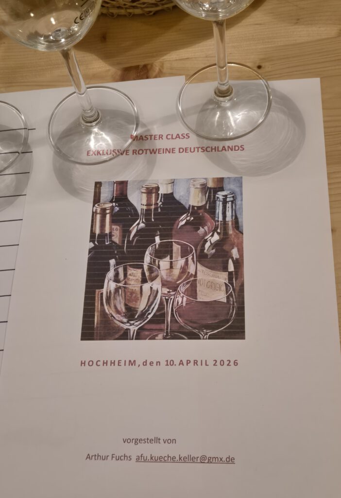 Einmal im Jahr gibt es bei den GenussSpechten die Masterclass Weinprobe im Weinbaumuseum. Das Besondere hieran ist: Maximal 15 Teilnehmende, für eine konzentrierte Arbeitsatmosphäre (theoretisch J), und die Weine werden verdeckt ausgeschenkt, in vier „Flights“ à drei Weinen gleichzeitig. Ein wenig wie bei den Weinproben beim Volksbildungswerk von Arthur Fuchs, auf anspruchsvollerem Niveau. Arthur Fuchs ist auch bei den Masterclassproben derjenige, der die Weine auswählt und die Weinproben leitet – ohne Themenvorgabe seitens des Vorstands.